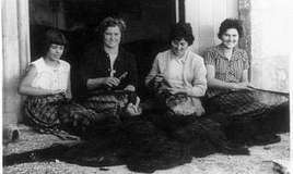 Nas Metamorfoses , Ovidio o gran poeta do amor celestial e profano, fala do mito de Aracne, fermosa e mortal, habelenciosa e oufana, que reta á propia Minerva, deusa da artesanía, a tecer un tapiz. A deusa non sabe perder. E transforma a rapaza en araña. A Historia foi sempre arañeira de odio e amor contundente entre homes e deuses. E logo aparece esta foto, de azougue gastado e sorriso abundante. Catro Marías Soliñas, catro redeiras a restaurar retallos de mar arborado. Cinco anos no adestro de agullas e xeitos de mallas. Escola do mar aberta á surada. Enxeñeiras, pois, en pespuntos e angazos de encaixe e relinga. Hic et nunc: As fiandeiras do mar velazqueño.